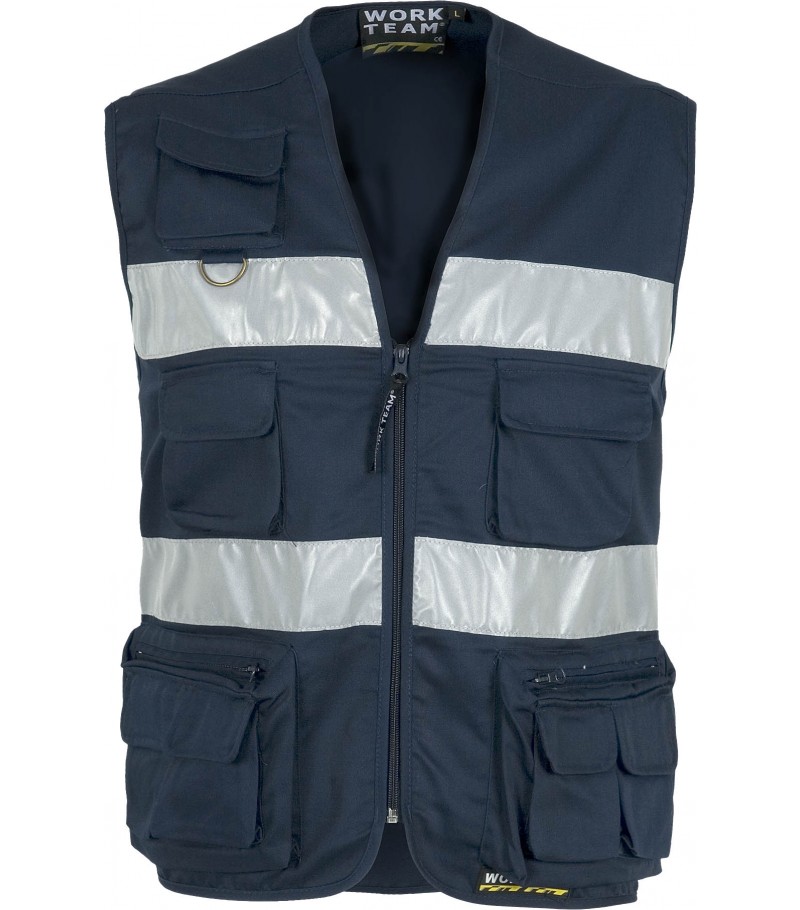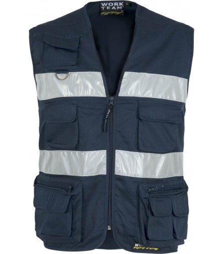 Chaleco multibolsillos con cierre de cremallera de nylon y ribeteado con bies.